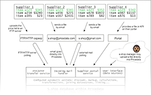 Automatic price and stock updates. Keep prices and stock levels up to date on your website, in marketplaces, in your accounting system, in a separate file, etc., based on your suppliers’ prices and stock levels, with the necessary adjustments.